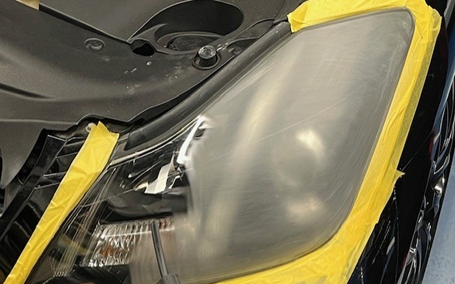 専用の機械を使い液剤を気化させ、ヘッドライトに吹きかける。